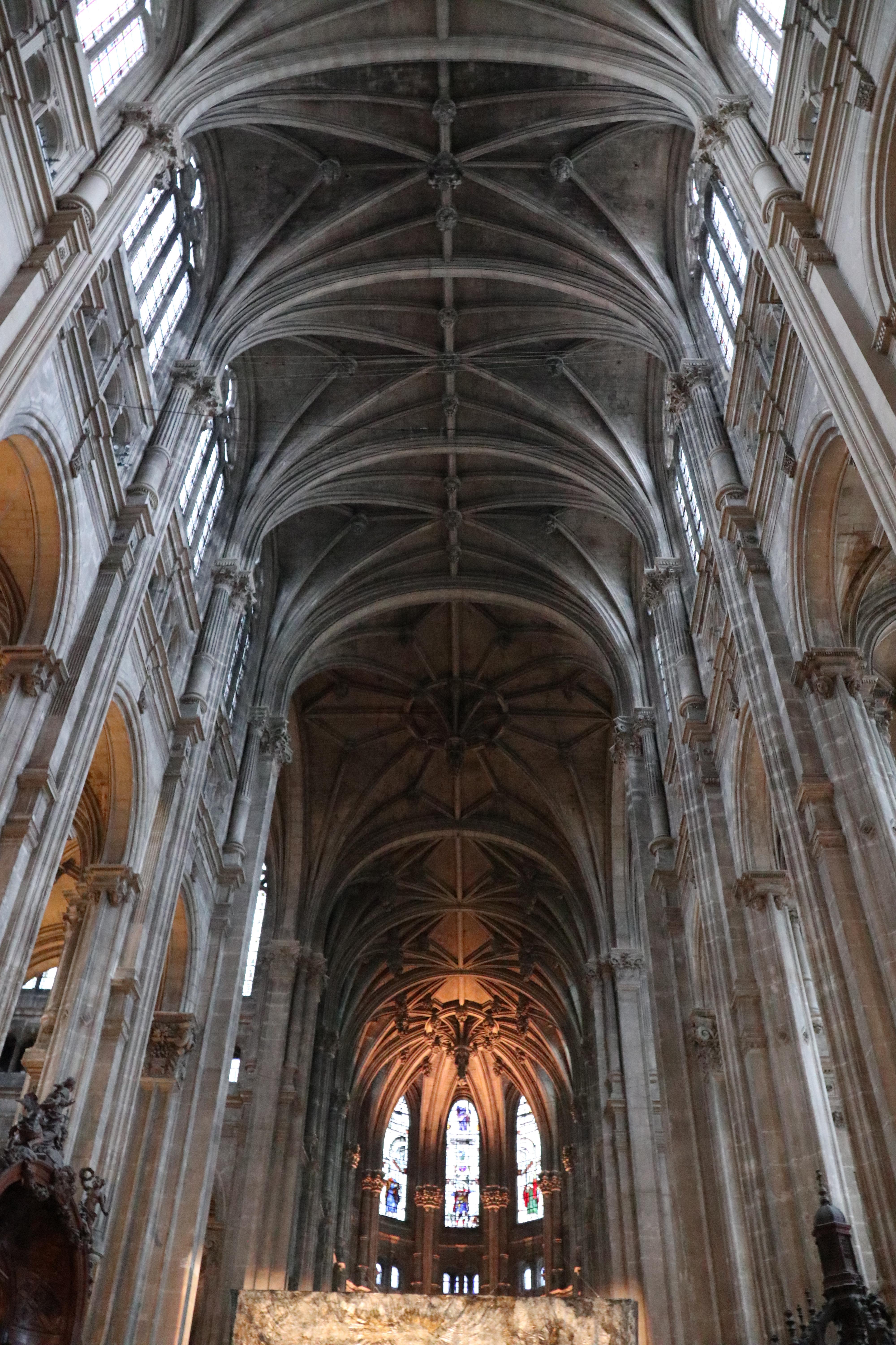 프랑스에서 교회건축은 17세기 초기까지 고딕건축이 우세했습니다. 그런데 샤를 8세의 이탈리아 원정으로 이탈리아의 르네상스 양식이 교회건축에도 도입되었는데, 교회건축에 초기에 도입된 사례의 셍뙤스타슈 성당이라고 할 수 있습니다.