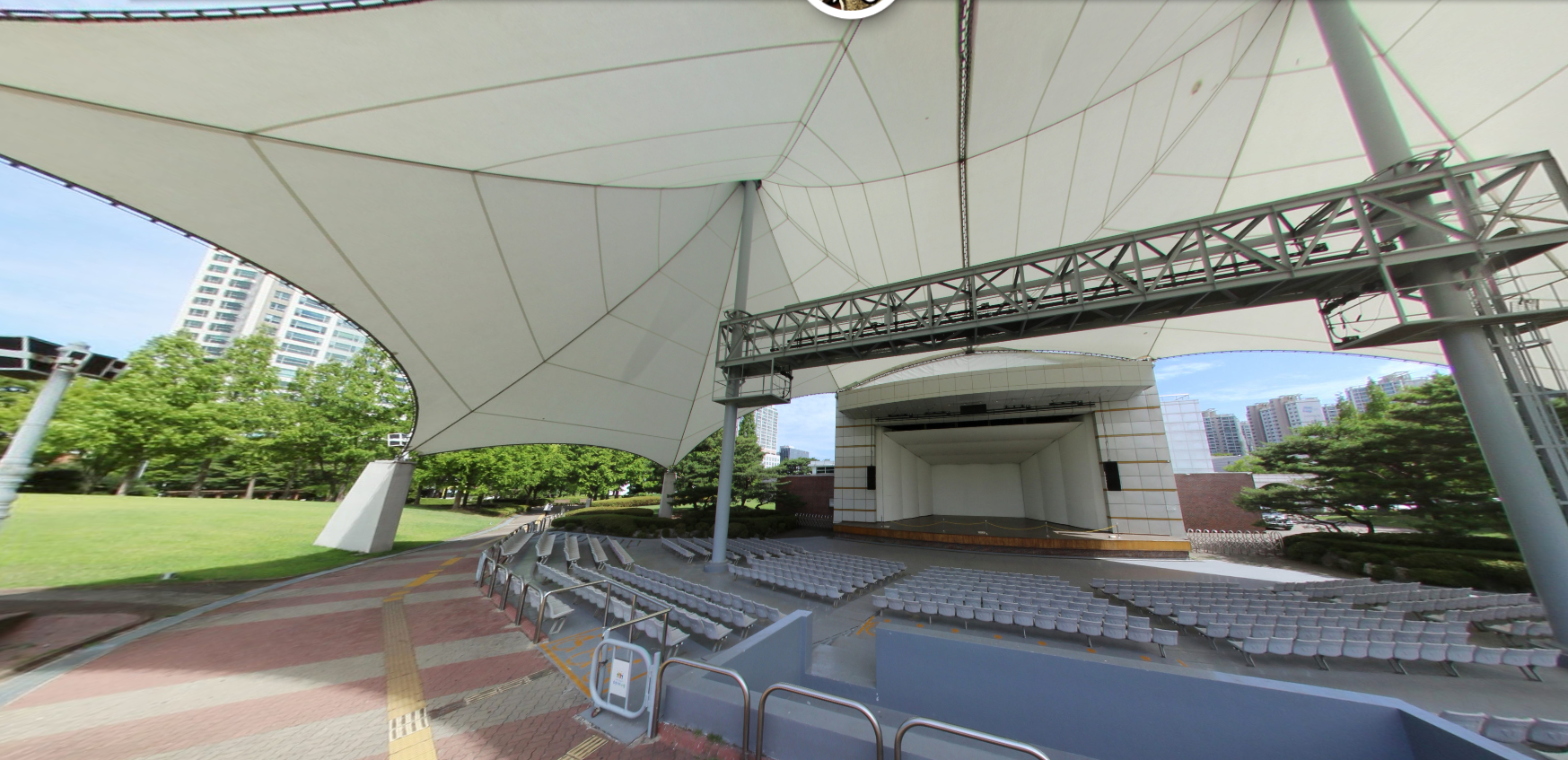 현수 막구조는 막 재료에 초기 장력을 도입해서 형태를 만들고 곡면에 강성을 부여한 후 하중을 전달하는 구조 방식입니다. 아무래도 순수하게 현수 막구조로 만들어진 건축물은 그리 많지 않습니다. 현수 막구조의 대표적인 건축물로 수원 제1야외공연장을 꼽을 수 있습니다.