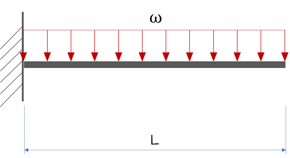 이렇게 캔틸레버보에 등분포하중이 가해진다면 다음과 같이 나타낼 수 있습니다.