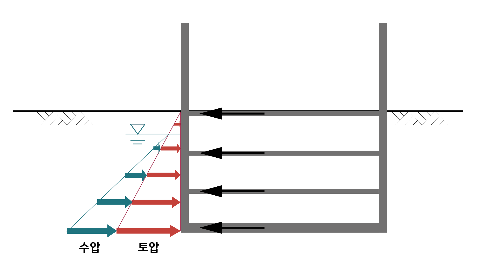 지반 아래에 있는 지하층은 수평방향으로 토압을 받습니다.