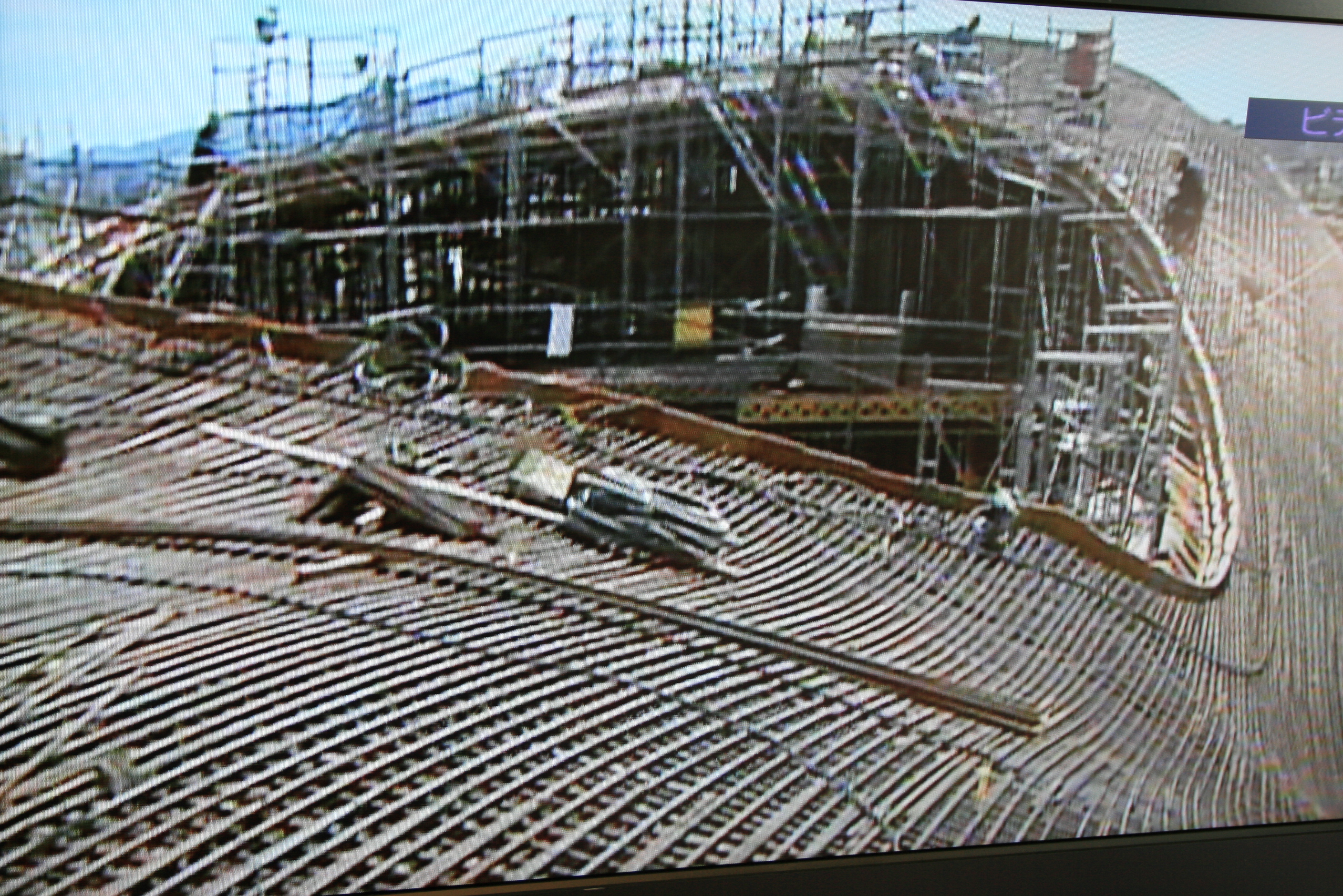 위 사진은 거푸집을 어떻게 설치했는지 가설구조의 단면을 보여주고 있습니다. 하부에 시스텝 비계를 세운 후 곡면의 곡율에 맞추어 거푸집을 조정한 것을 알 수 있습니다.