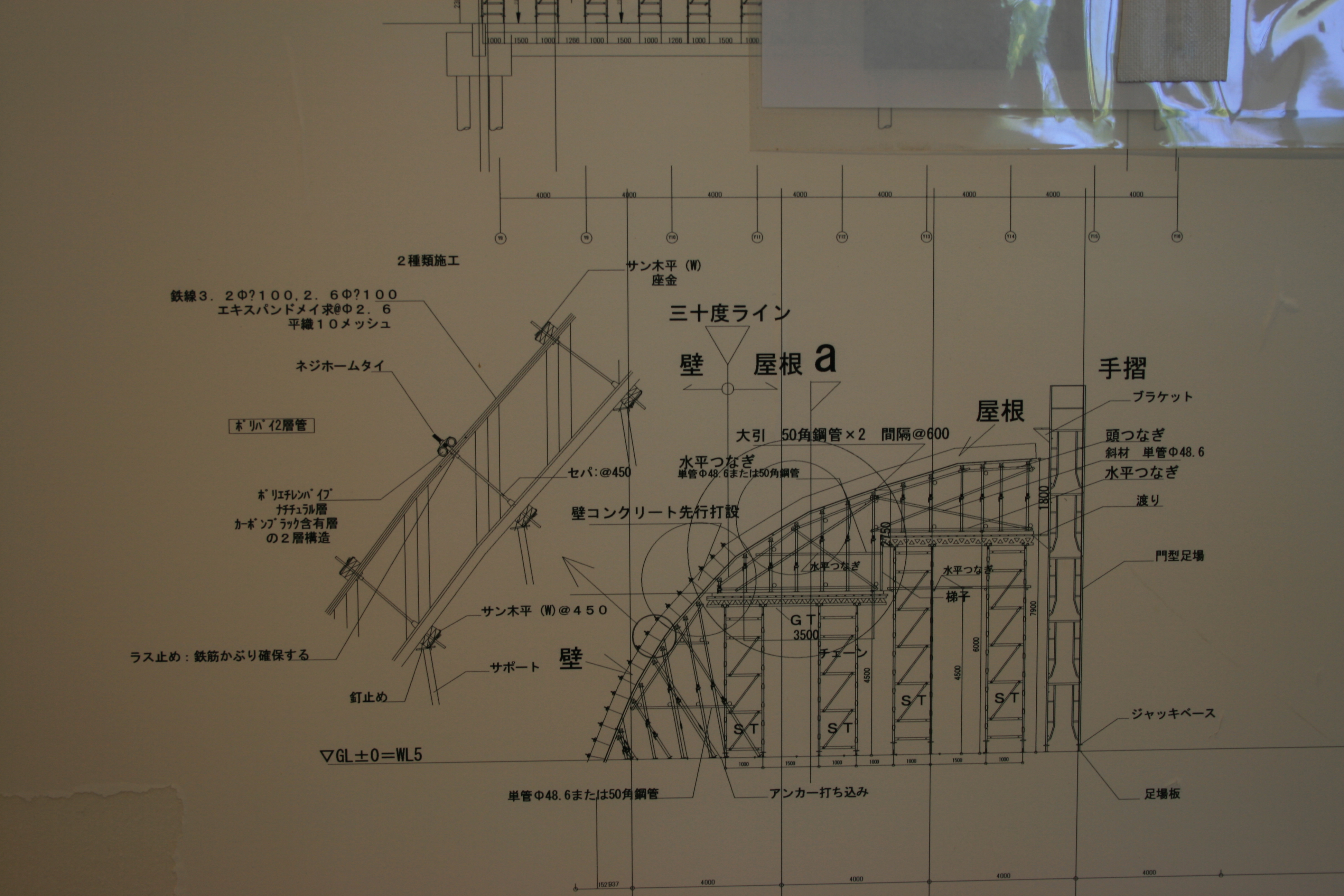 비정형쉘구조라서 콘크리트 두께가 약간 두껍게 되어 있습니다. 거푸집 작업이 매우 어려웠다는 것을 알 수 있습니다.