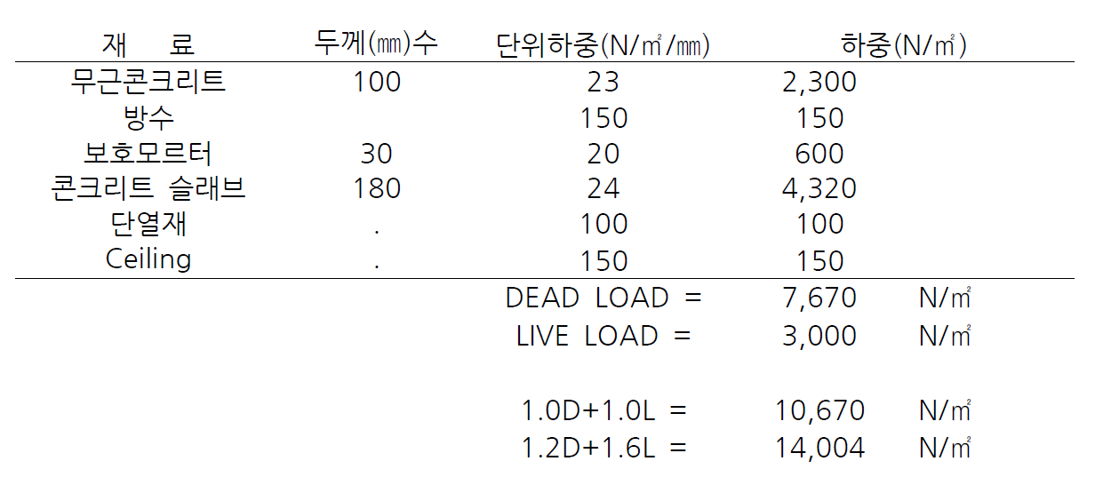 실제 구조계산에서 고정하중을 적용한 사례는 다음 글을 참고하시기 바랍니다.