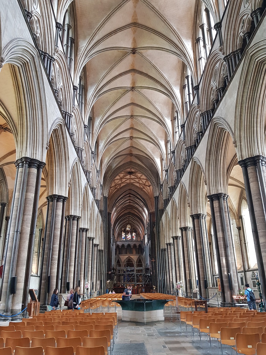 영국 남부에 있는 엑서터(Exeter)성당의 내부를 보시면 리브볼트를 따라 선명하게 수직선이 강조되는 내부 공간을 느끼실 수 있습니다. 장미의 창은 덤입니다.