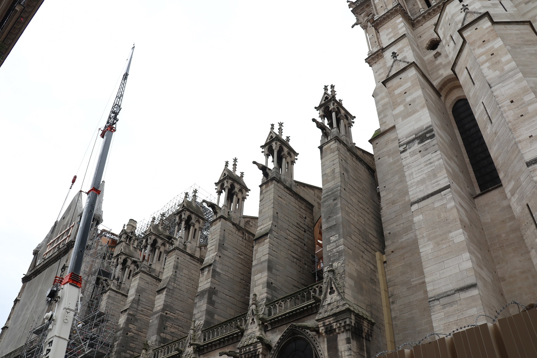 고딕에서는 부축벽 위에 첨탑을 올려 구조적 성능을 높였습니다. 부축벽 위에 첨탑을 올리면 첨탑의 자중 때문에 수직 방향 성분이 증가합니다. 플라잉 버트레스로 유도된 하중은 부축벽을 옆으로 밀게 되는데, 첨탑 때문에 수직 방향 성분이 추가되면 이 하중은 아래로 향하게 된다. 결국 부축벽의 크기를 키우지 않고도 네이브 상부의 추력을 충분히 지탱할 수 있습니다.