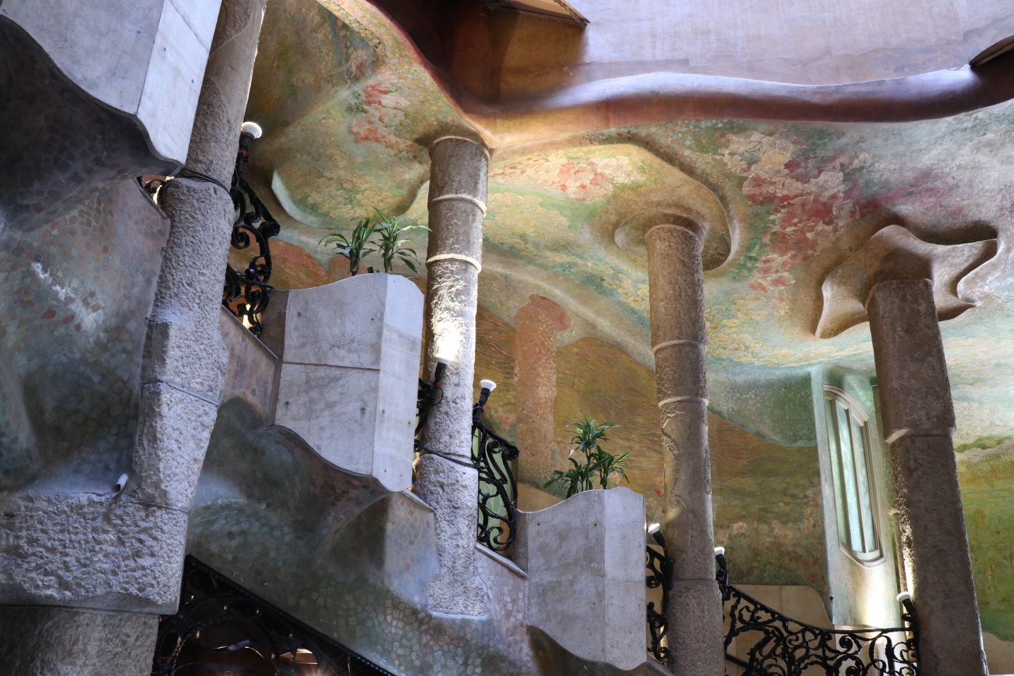 이런 파동은 느낌은 실내에서도 이어지는데, 카사 바뜨요와 비슷하게 실내 천장에도 물결이 흘러가는 듯이 장식되어 있습니다.