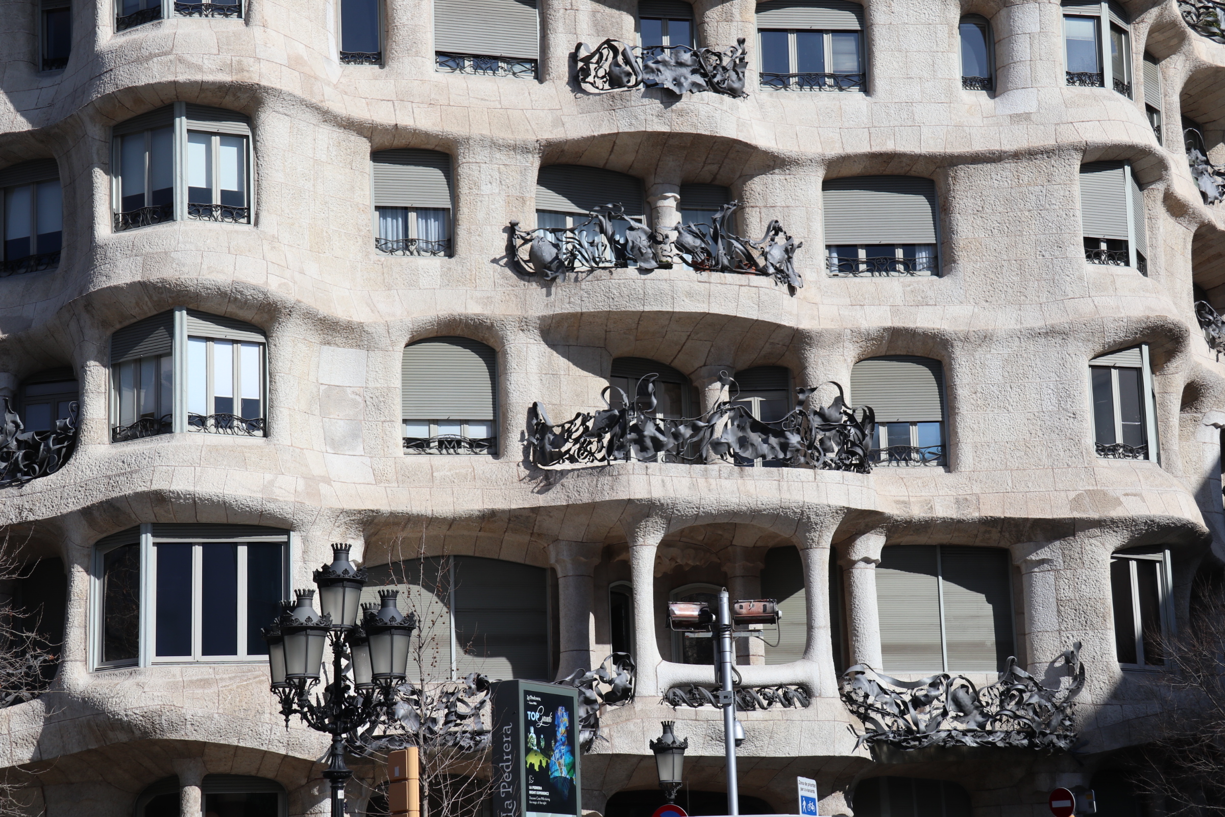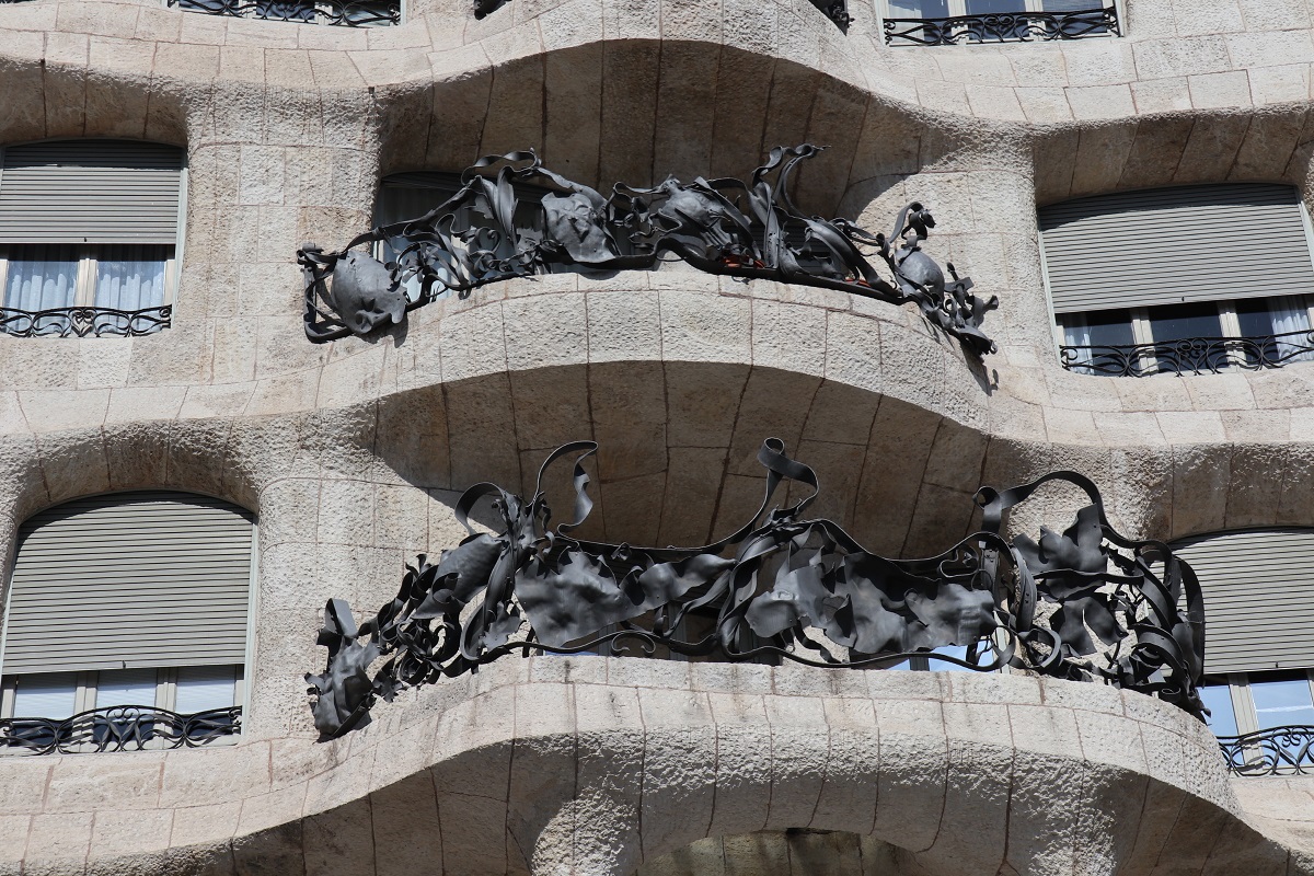 카사 밀라는 파동치는 덩어리로 자연의 이미지를 전면적으로 표현했지만, 난간 등에 사용된 철물은 매우 정교하게(하지만 투박한 느낌으로) 만들어져 있습니다. 바닷가에서 흔하게 볼 수 있는 해초가 벽면에 달라붙은 듯, 연철로 만들어졌음에도 매우 가볍게 붙어있는 듯한 느낌이 듭니다.