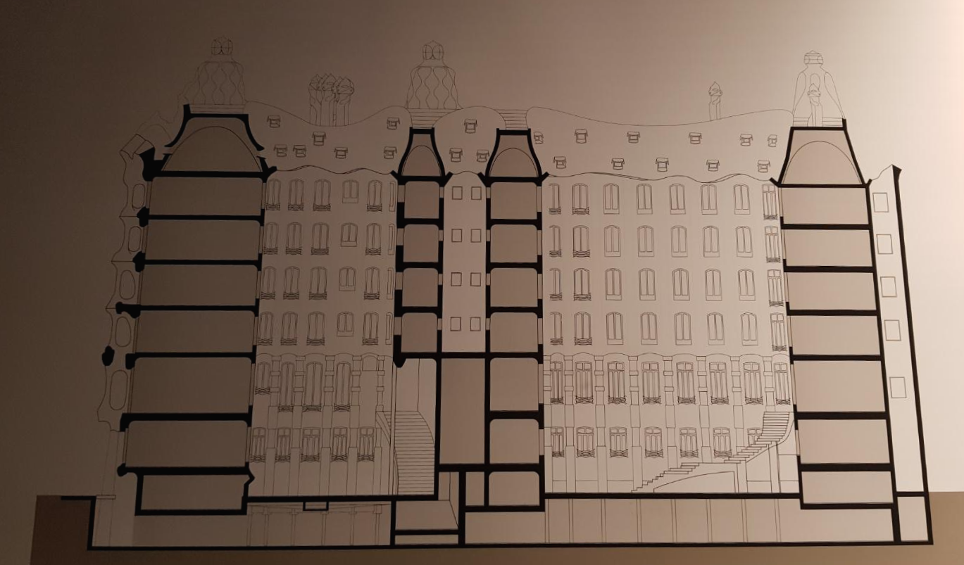 굽이치는 파사드의 벽면은 석고 모형을 본따서 제작했다고 합니다. 조각가 카를레스 마니(Carles Mani i Roig)가 1/10 정도의 축소된 석고 모형을 만들었고, 그 모형을 각각의 부분으로 분할해서 그 모형을 보고 석공들이 현장에서 실제 벽체를 만들었다고 합니다.