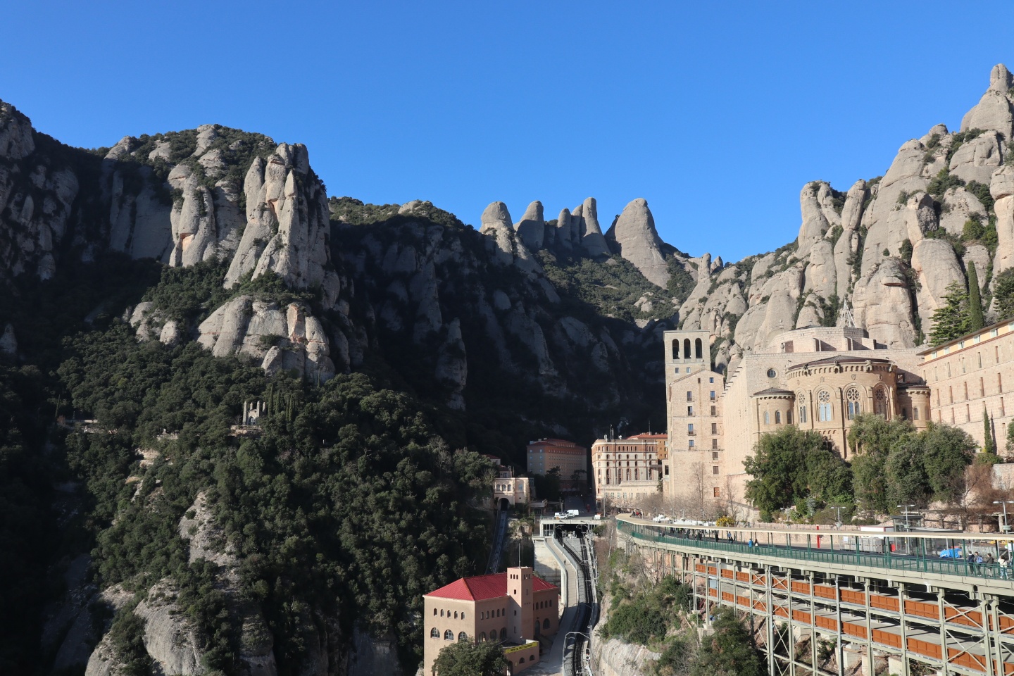 아래 사진은 바르셀로나 인근에 있는 몬세라트(Montserrat)라는 이름의 산과 그 밑에 자리잡은 수도원 모습입니다. 거대한 바위로 뒤덮인 몬세라트의 풍경이 카사 밀라와 닮아 보입니다.