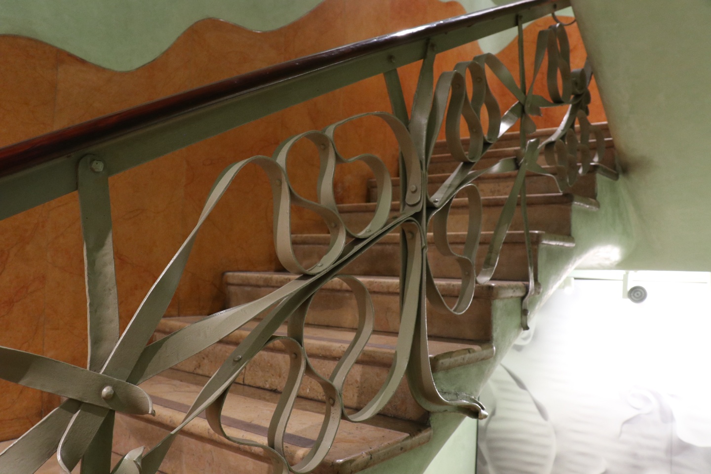 내부에서도 역동적인 파동은 다양하게 표현됩니다. 계단실을 따라 올라가는 물결 무늬와 난간을 장식하는 불규칙하게 구부러진 장식물도 파도치는 것처럼 보입니다.