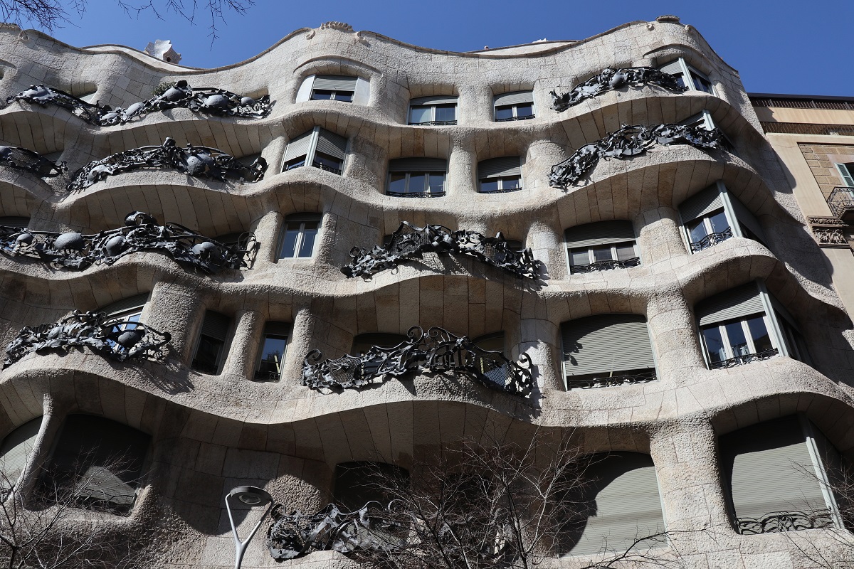 카사 밀라(Casa Milà)에는 직선이 거의 없고 대부분 곡선으로 이루어져 있습니다. 카사 밀라는 카사 바트요와 함께 가우디의 자연주의가 가장 잘 표현된 건축물일 것입니다.
