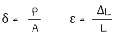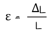 그리고 재료가 변형이 되는 정도는 원래의 길이에 영향을 받게 됩니다. 즉 기다란 고무줄을 잡아당기면 많이 늘어나고 잛은 고무줄을 당기면 조금 늘어납니다. 따라서 어떤 재료든 단위길이당 어느 정도 늘어나는가로 비교하는 것이 타당합니다. 이것을 변형도라고 하고 보통 ε로 표기합니다. 이 변형도는 늘어난 길이를 원래의 길이로 나누어서 나타냅니다.