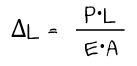자 그럼 축방향력이 작용할 때 변형이 얼마나 발생하는지 쉽게 계산할 수 있겠죠? 위 식을 변형하면 다음과 같이 됩니다.