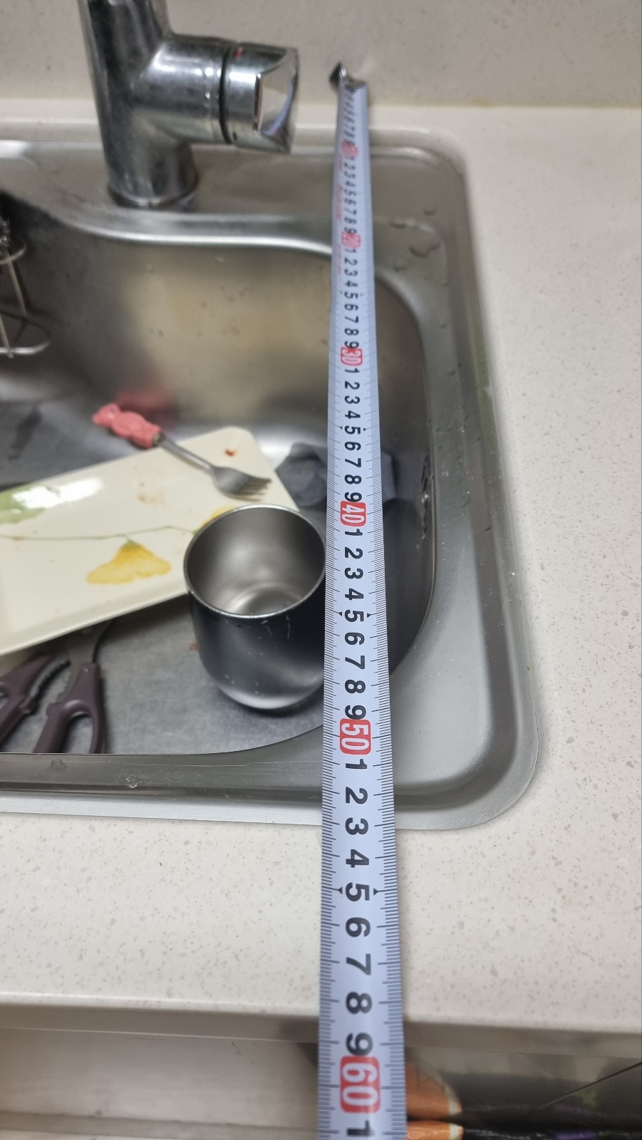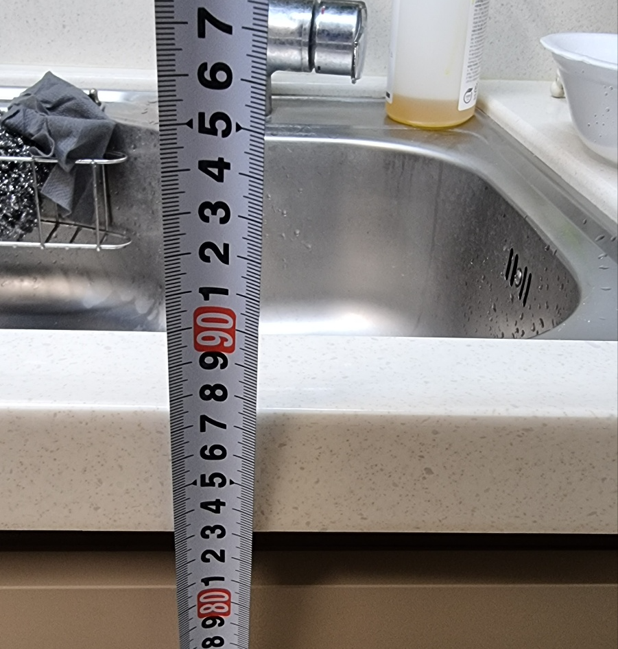 실제 치수를 보겠습니다. 세면기 높이는 760 정도입니다.