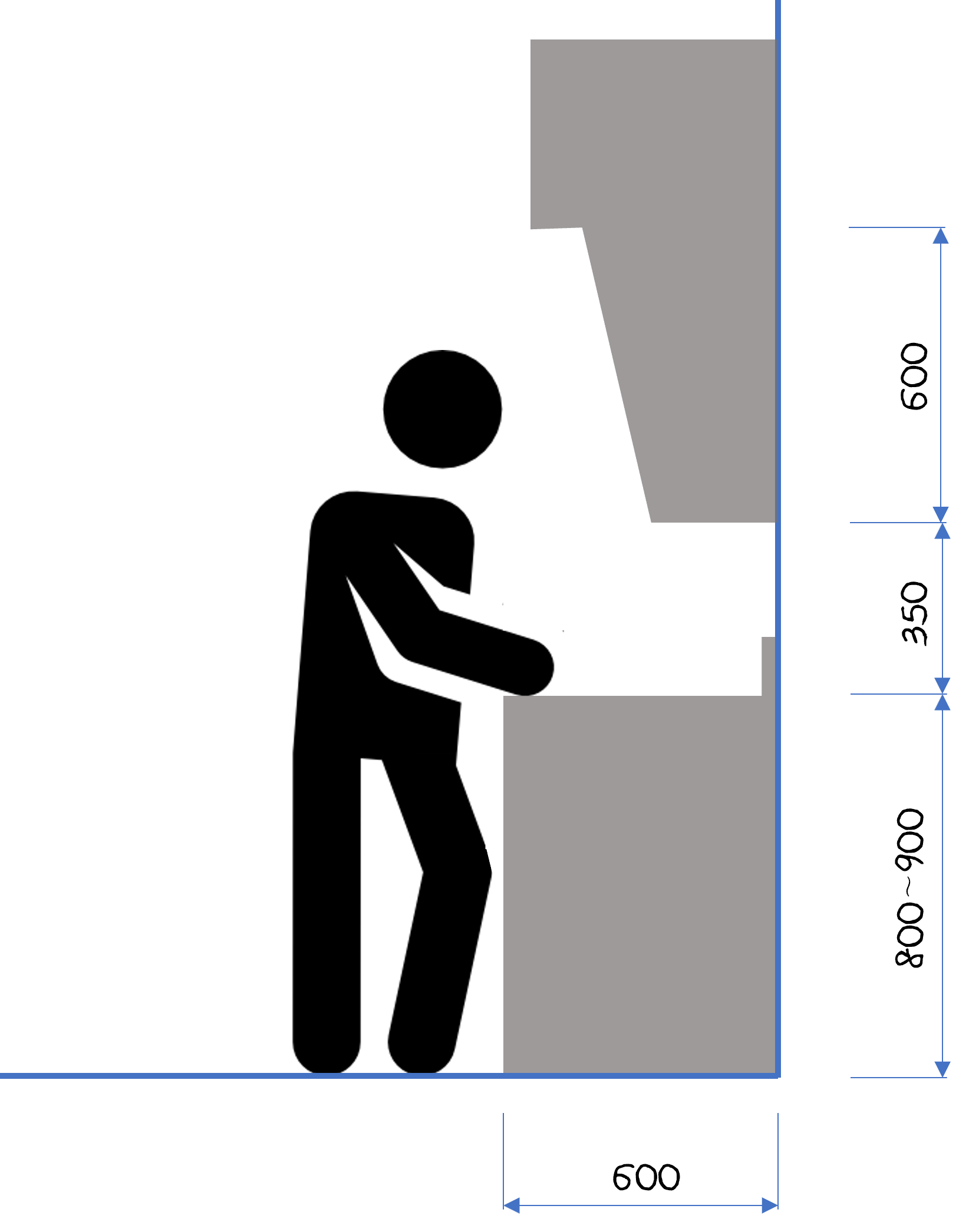 싱크대의 설계기준 치수는 다음과 같습니다.