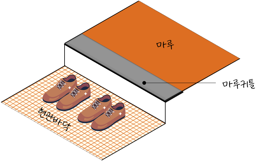 현관바닥에 신발을 신고 마루로 올라서는 것이 일반적인 형식입니다. 그래서 마루 끝 경계선에 나무나 돌같은 재료를 써서 마루귀틀을 설치합니다.