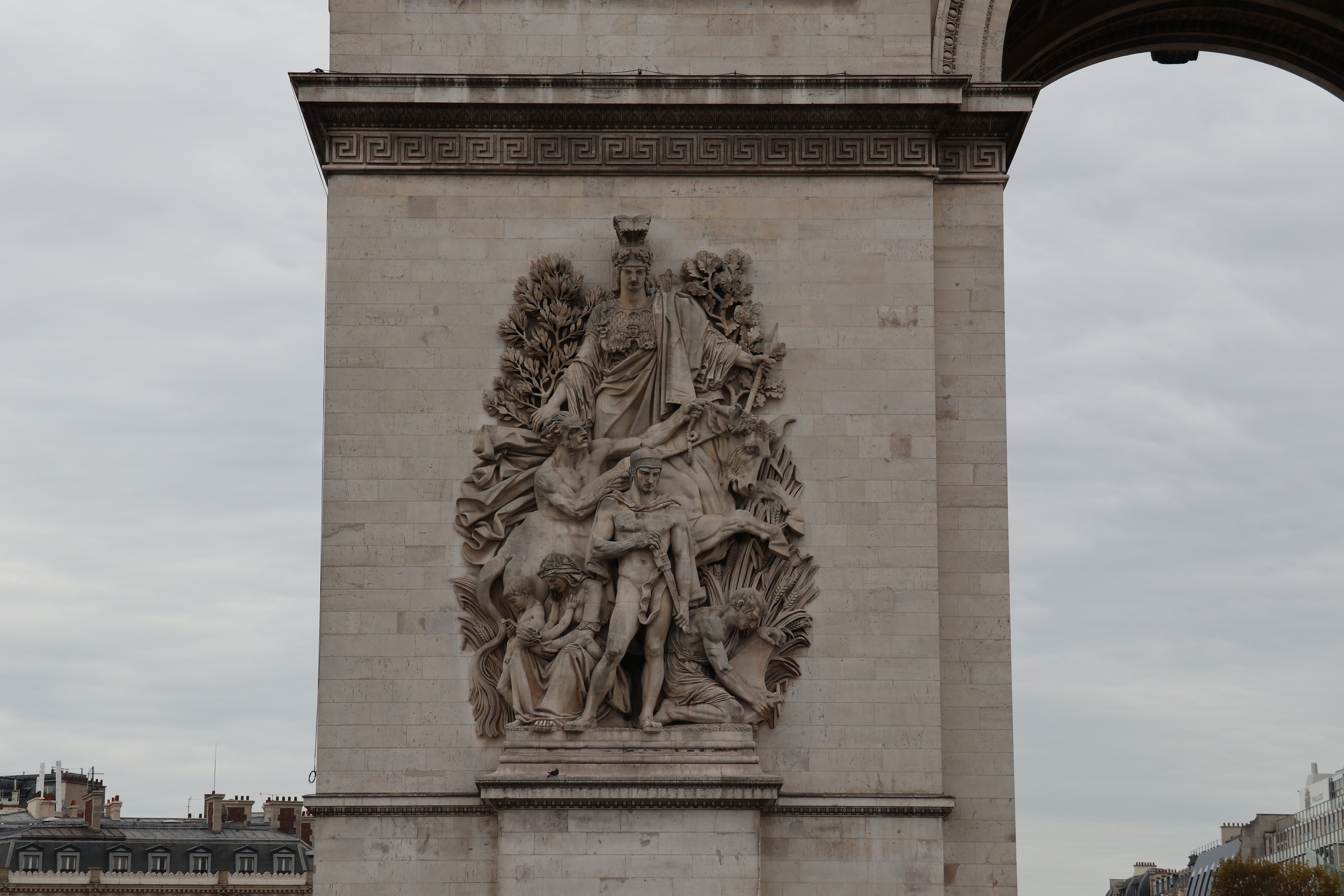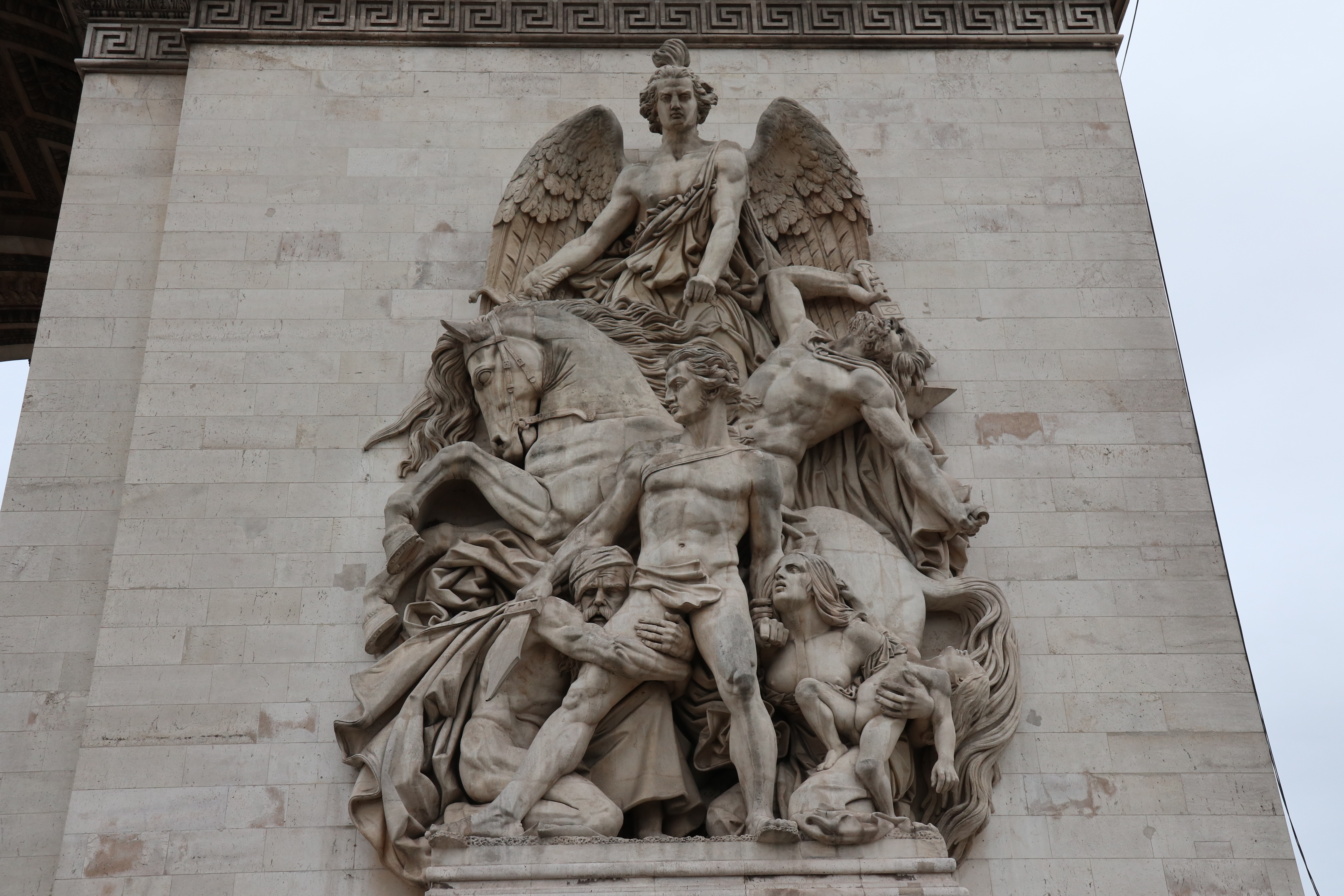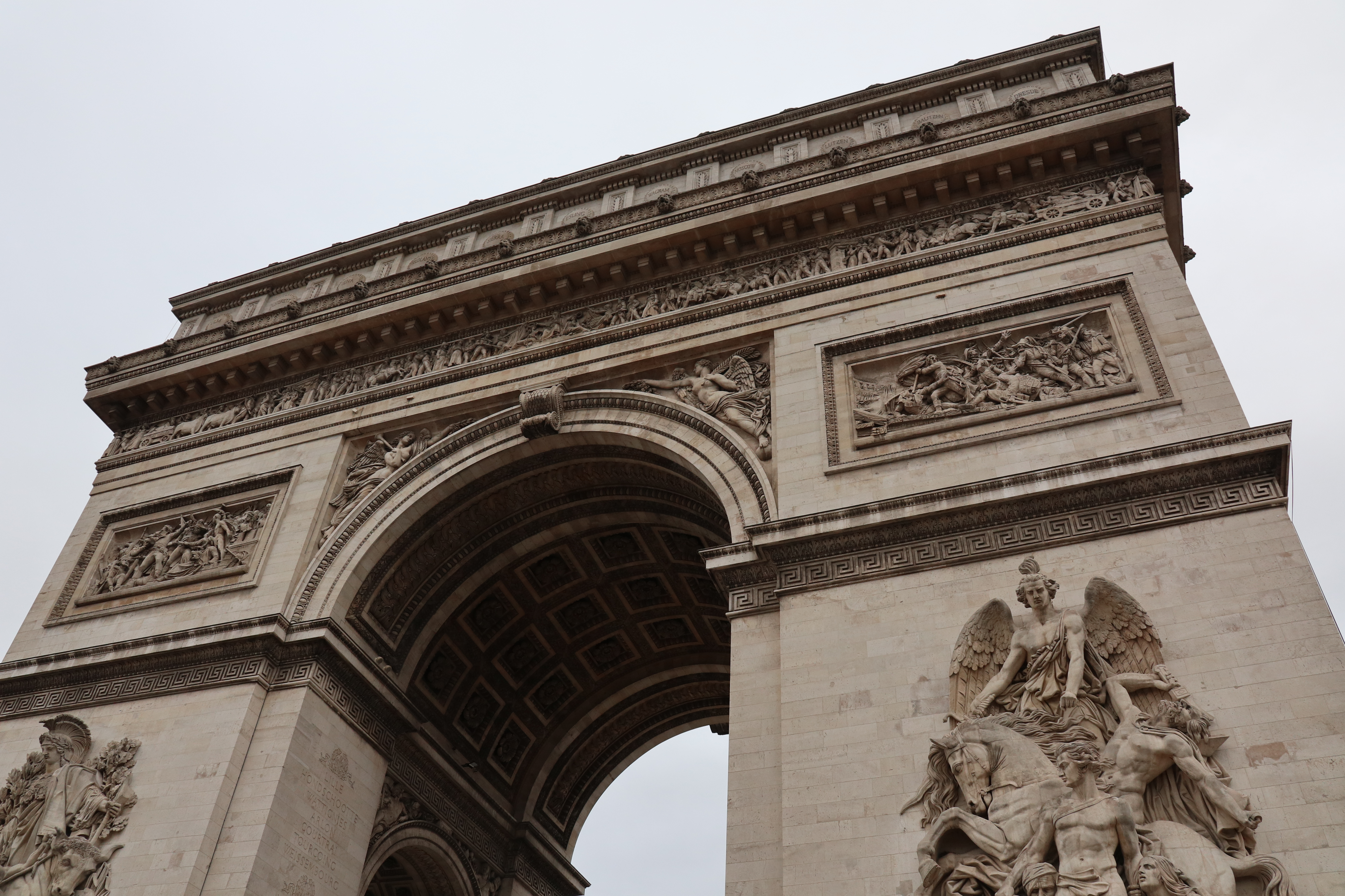 개선문의 기둥 4개에는 장피에르 코드토(Jean-Pierre Cortot, 1878∼1843)가 제작한 '1810년의 승리', 앙투안 에텍스(Antoine Etex, 1808∼1888)가 제작한 '저항'과 '평화', 프랑수아 뤼드(Francois Rude, 1784∼1855)가 제작한 '라마르세예즈' 등이 부조 조각이 커다랗게 새겨져 있습니다.