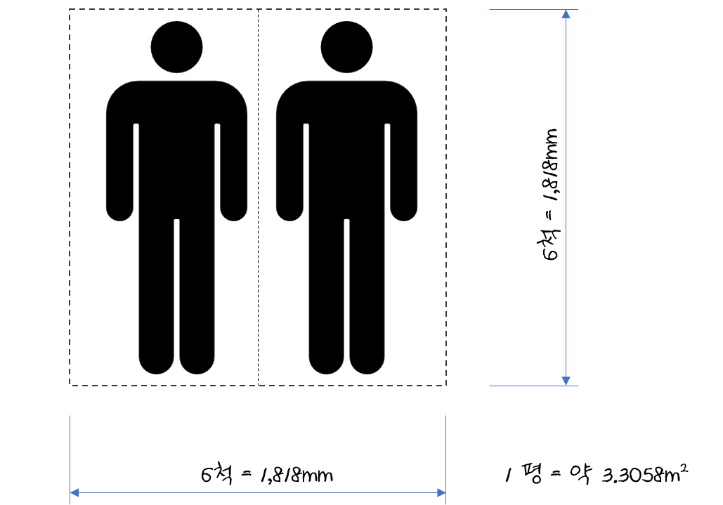 한 평이라는 단위도 직관적으로 이해하기 쉽습니다. 한 평은 두 사람이 누웠을 때의 최소면적을 나타내는 것이니까 한 평의 크기가 내 몸을 기준으로 어느 정도인지 대략 감으로 잡을 수 있습니다.