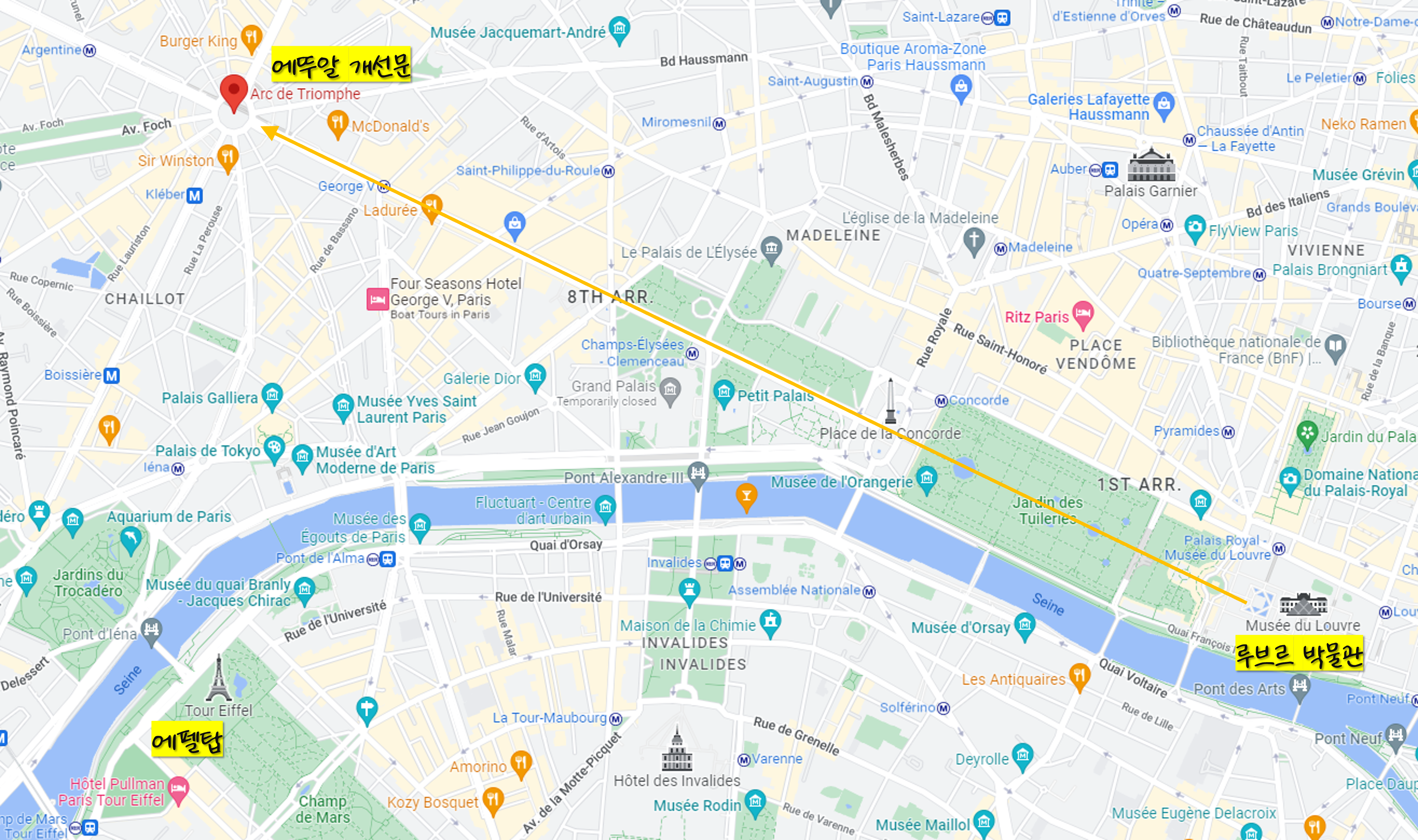 루브박물관은 파리의 중요한 도시축이 시작되는 지점에 위치하고 있습니다. 루브르박물관에서 샹젤리제거리를 거쳐 에뚜알 개선물에 도달하는 축선이 핵심축입니다.