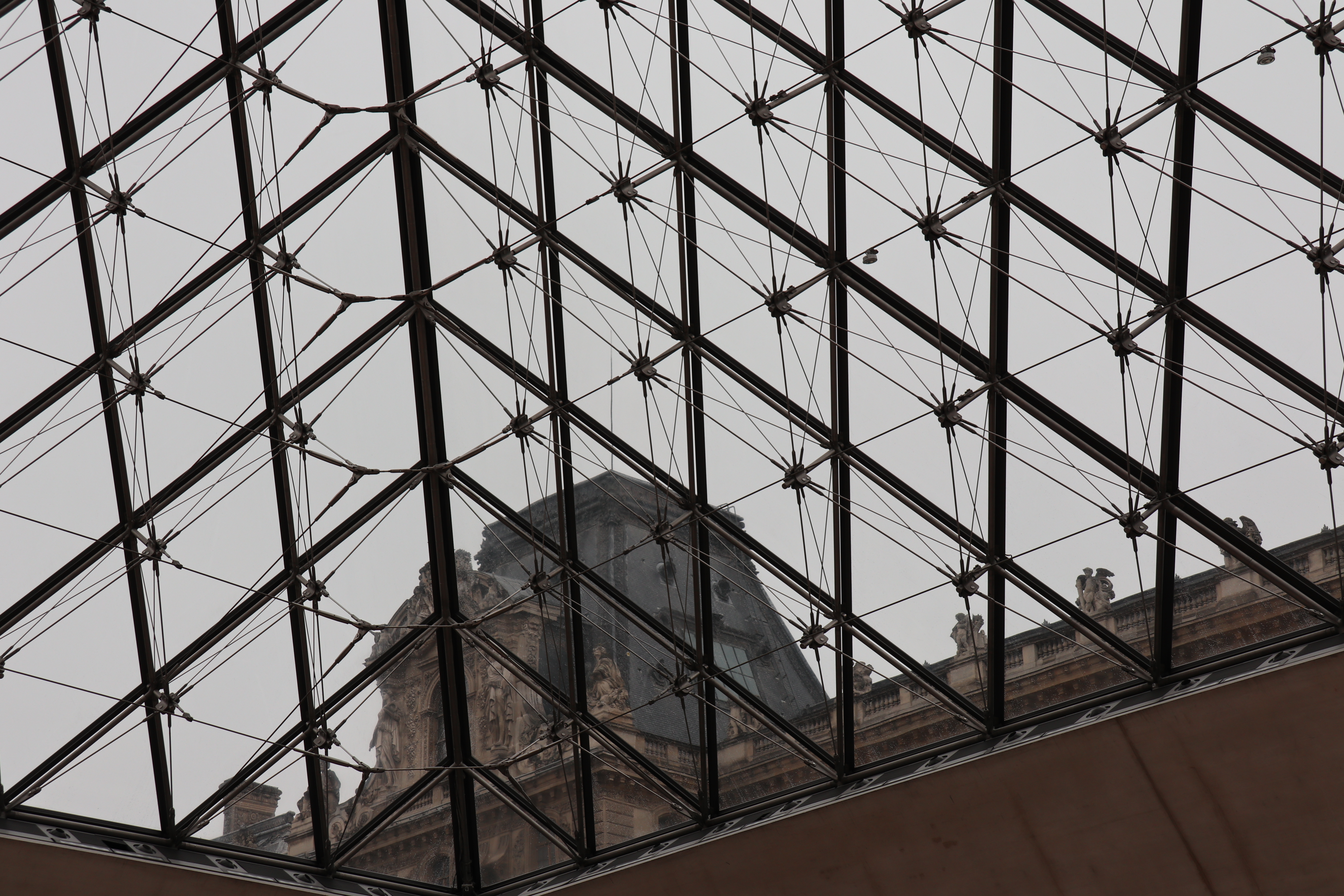 가장 발전된 재료인 유리와 강선을 사용하면서 그 당시의 가장 혁신적인 공법으로 피라미드를 구현하였다는 것이 상징적입니다. 유리의 단점을 강선으로 보완하면서 최대한 투명한 피라미면을 확보할 수 있는 공법을 사용했습니다.