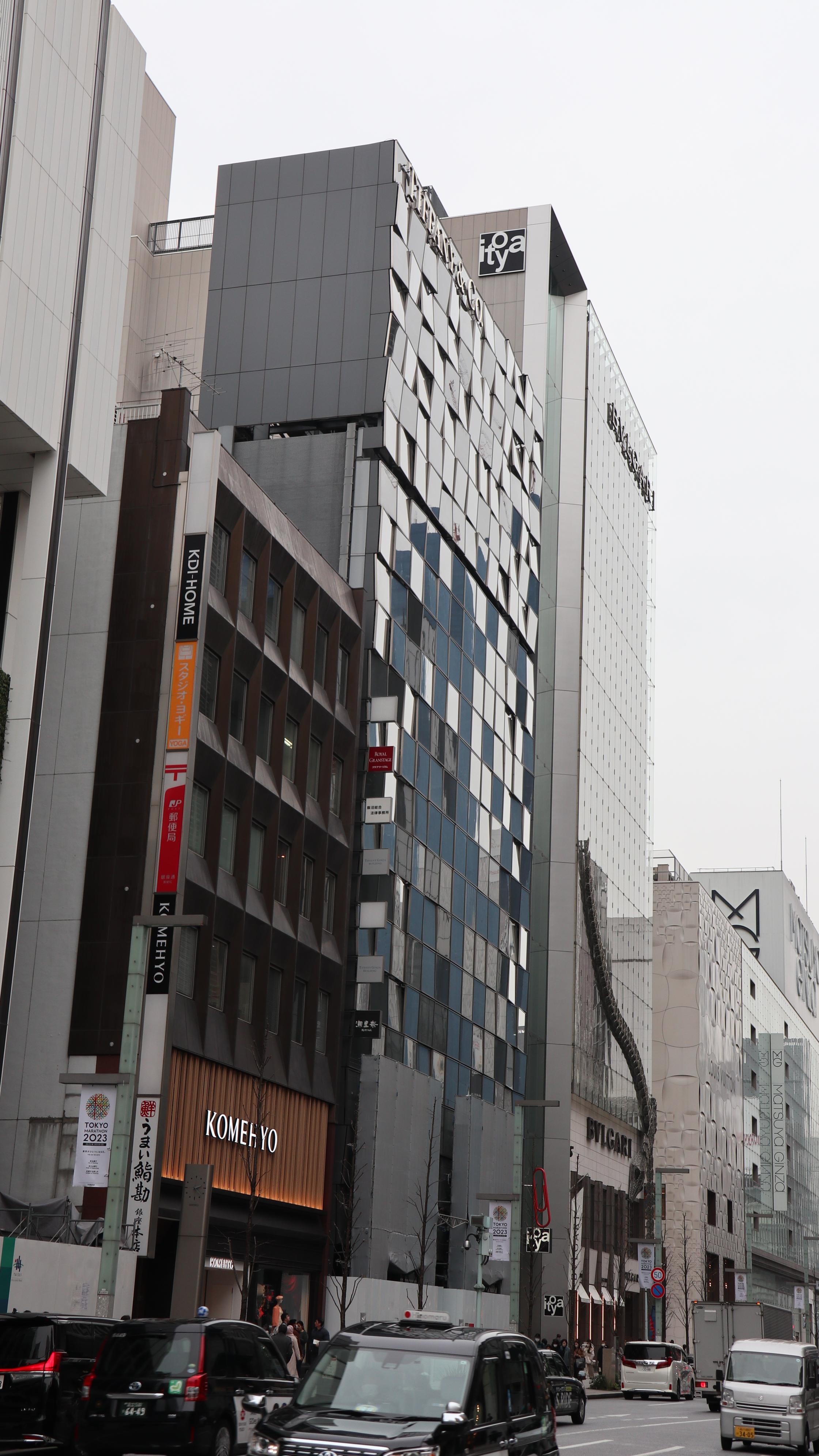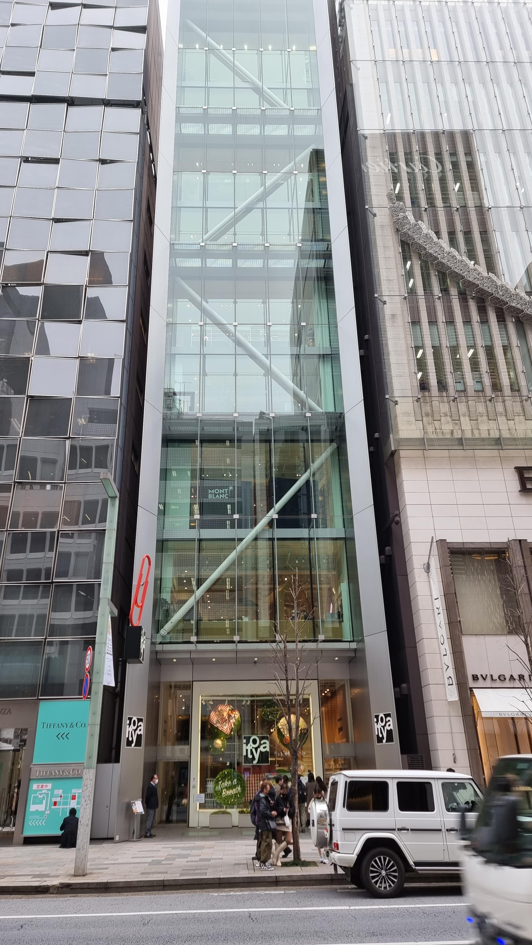 이토야는 티파니 긴자 본점 바로 옆에 있는데, 일본 도심지의 전형적인 연필빌딩의 모습을 하고 있습니다.