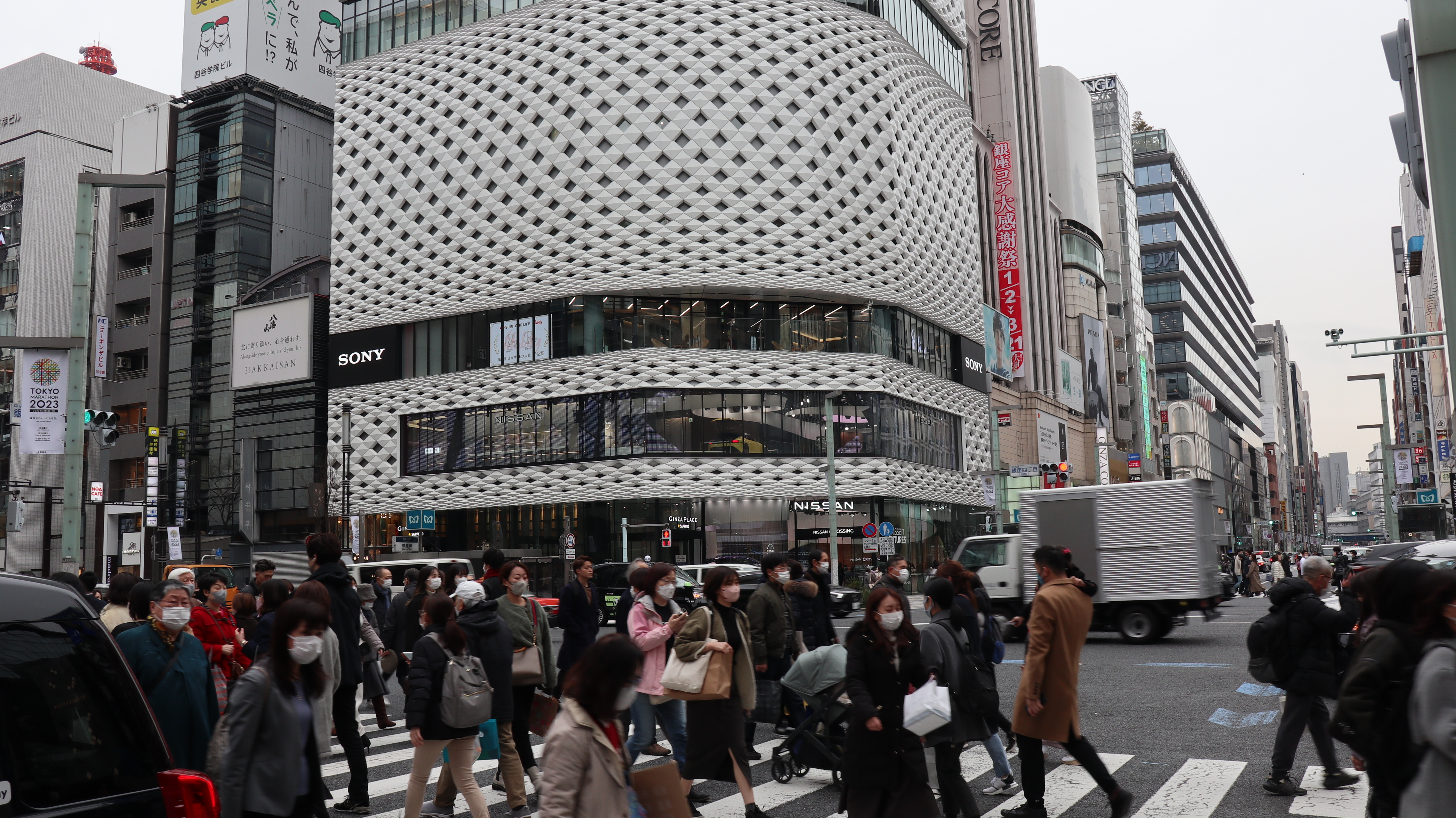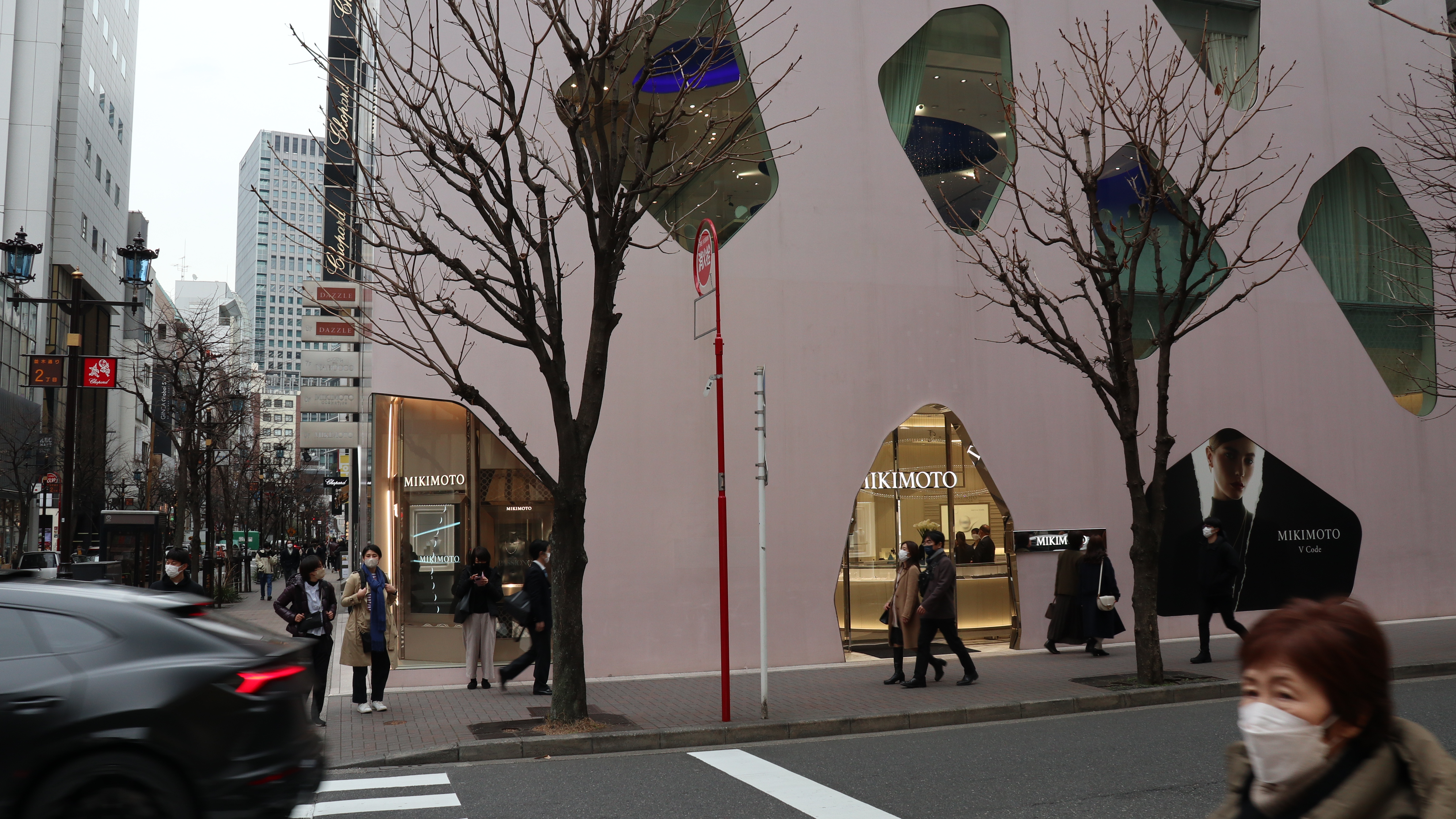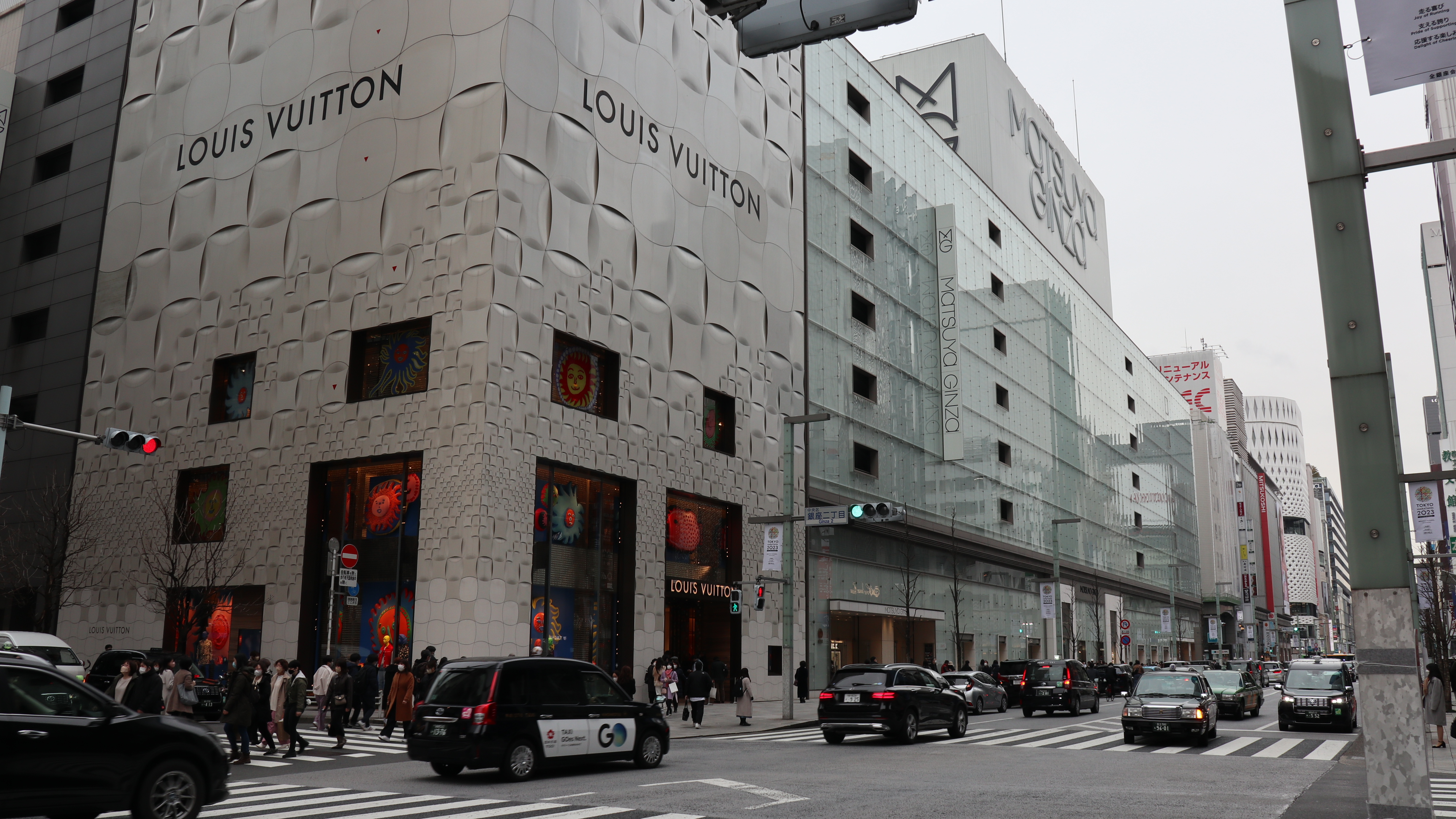 긴자는 일본에서 백화점이 가장 먼저 문을 연 곳인데, 지금은 마로니에 거리를 중심으로 명품 브랜드 매장이 줄지어 서있는 지역이기도 합니다. 각각의 브랜드의 이미지를 구현한 건축물을 보는 것도 색다른 재미를 줍니다.