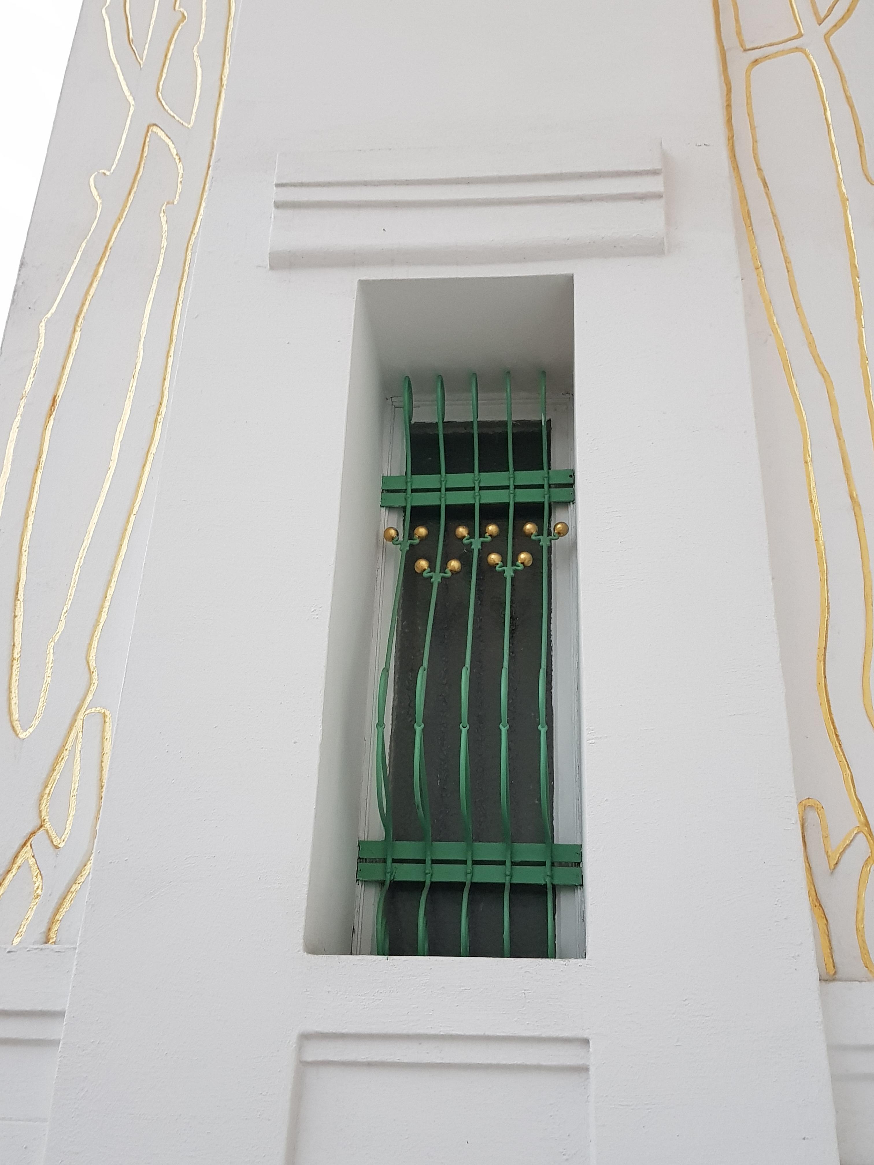 그리고 이 밋밋한 입면을 자연을 모티프로 한 문양으로 장식을 합니다. 맨 꼭대기에는 금빛 월계수 잎을 새긴 원형 조형물인 쿠폴라를 얹었습니다.